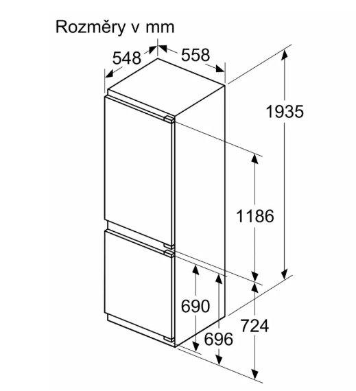 Technický přehled Rozměry spotřebiče 1935x558x548 mm Třída energetické účinnosti 1Poznámka pod čarou 1: stupnice tříd energetické účinnosti od A do G C noFrost - již nikdy žád ...Více informací
