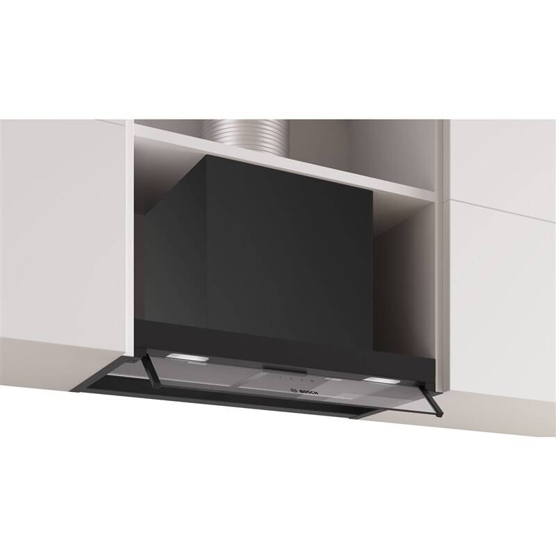 Neviditelná elegance se silným výkonem. To je odsavač par Bosch DBB65CC60, který dokonale zapadne do vaší kuchyně a nenaruší její design. Matný povrch redukuje viditelnost otisků prstů a díky speciálnímu tvaru odsavače získáte ve skříňce větší úložný prostor. Výhodou je také snadná instalace a možnost recirkulace, či odtahu do komína. Odsavač vyrobený v Německu má filtrační systém s kovovým tukovým filtrem, který zajistí čerstvý vzduch při vaření. Při čištění jej stačí vložit do myčky a bude jako nový. Ovládání je velmi snadné díky elektronickým tlačítkům, kterými si volíte intenzitu ze 3 stupňů a spuštění LED osvětlení.