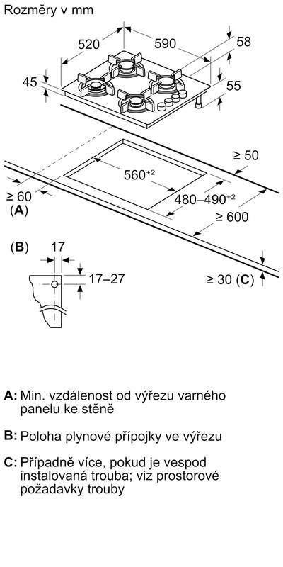 rozměry spotřebiče (V x Š x H): 54.5 x 590 x 520 mm
