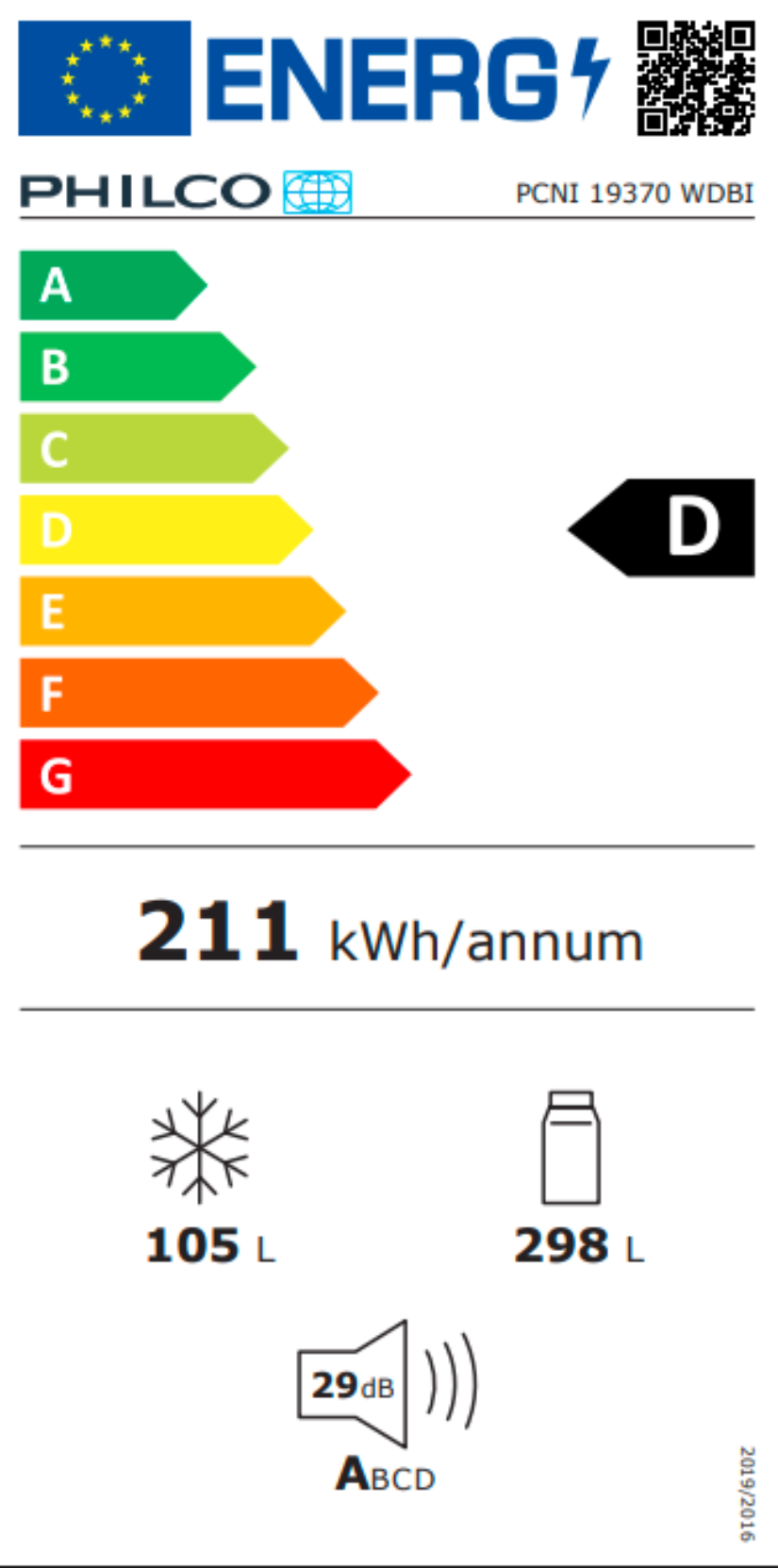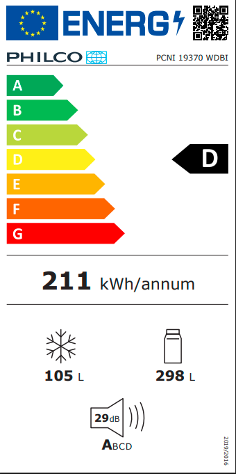 Kombinovaná vestavná chladnička PHILCO PCNI 19370 WDBI Celkový objem 403 l Objem chladničky/mrazničky: 298 l/105 l Energetická třída D Invertorový kompresor 10 let záruka NoFr ...Více informací